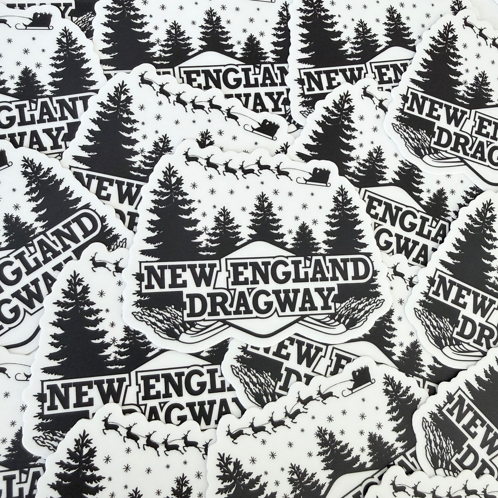 New England Dragway logo die cut sticker with a little holiday touch!
