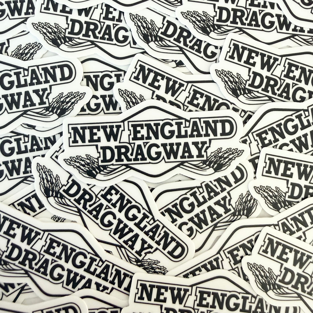 A simplified version of the New England Dragway logo we all know and love, ready to be stuck to any car, bottle, or computer of your choosing!